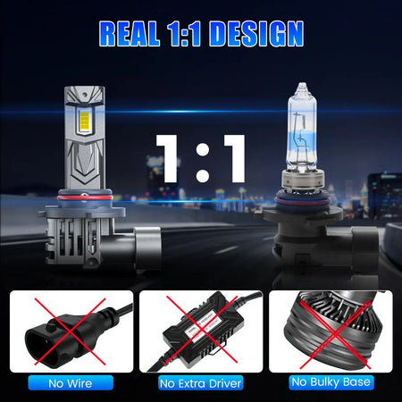 The LED in our bulbs uses high-quality LED chips and creates an astonishing 30,000 lumens of light, 800 percent brighter than normal getaway bulbs. That means not only better visibility, but also improved driving safety — giving you a more comfortable and confident driving experience.