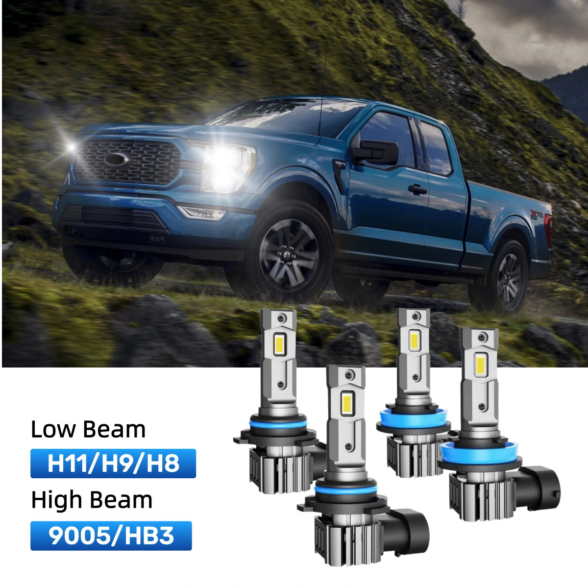 Our LED headlight bulbs, specifically designed for 2021-2023 Ford F-150 models, feature a precise optical design with a sharp tangent line, providing an ideal beam pattern. This is an efficient way of avoiding the glare of other cars coming towards them, thus enhancing packaging safety when on the road.