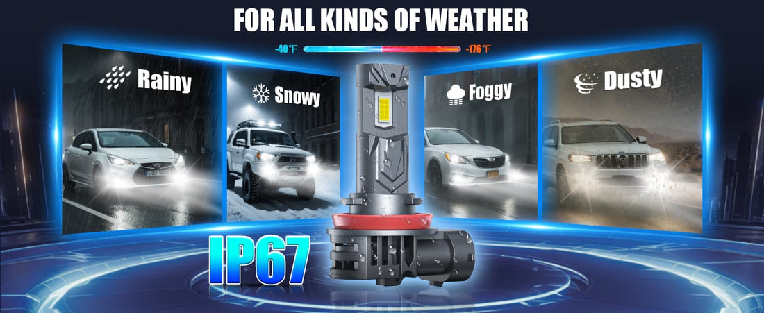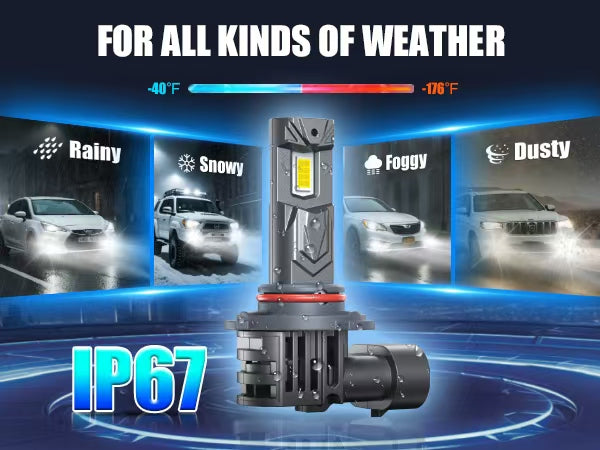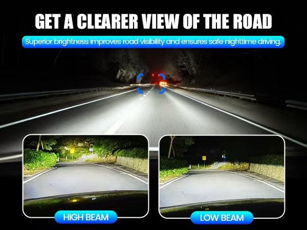 • The 30000LM strong light output provides 6000K cold white light visibility, wider angle and longer light distance to ensure your safe driving in dark and bad weather conditions.