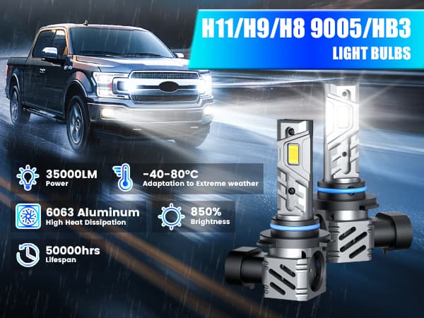 • Completely upgraded LED chip, 100W, 35000LM, RCJ RCJ 9005/HB3 H11/H9/H8 Headlight bulb can provide 850% higher brightness than ordinary halogen lamps, 6000K cold white light makes the road clearer, providing you with safety.