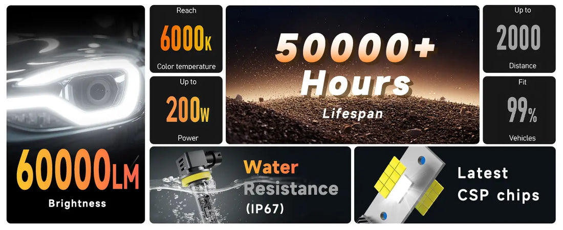 The M2 Series LED headlamp bulbs 9005 9006 deliver powerful brightness and an ultra-wide field of view, ensuring clear visibility whether you're driving down the road or navigating tight corners.