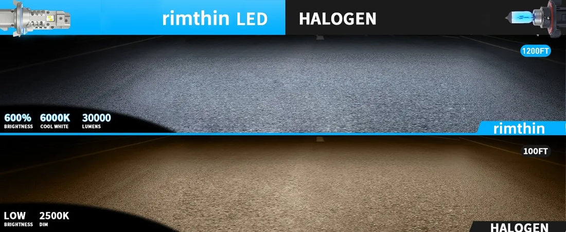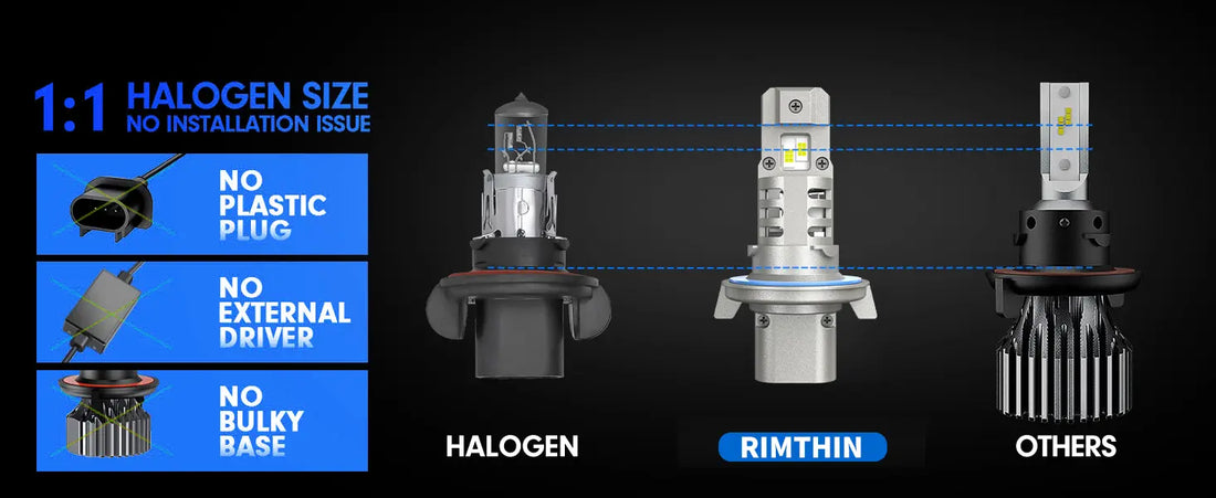 • RIMTHIN H13 Headlight bulbs are fully upgraded with LED chips, which are 600% brighter than halogen bulbs and greatly enhance light penetration and visibility.