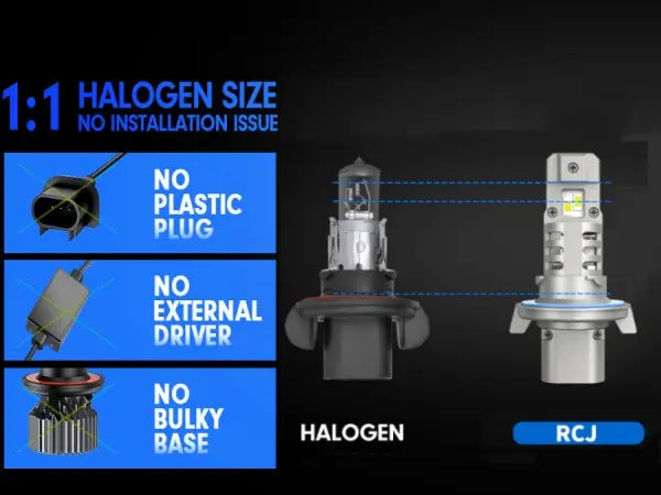 • Directly connect like halogen lamps, no need to worry about the narrow space of the housing, no need any aftermarket adapters/keepers to install high beam and low beam perfectly, keep you away from all kinds of installation problems.