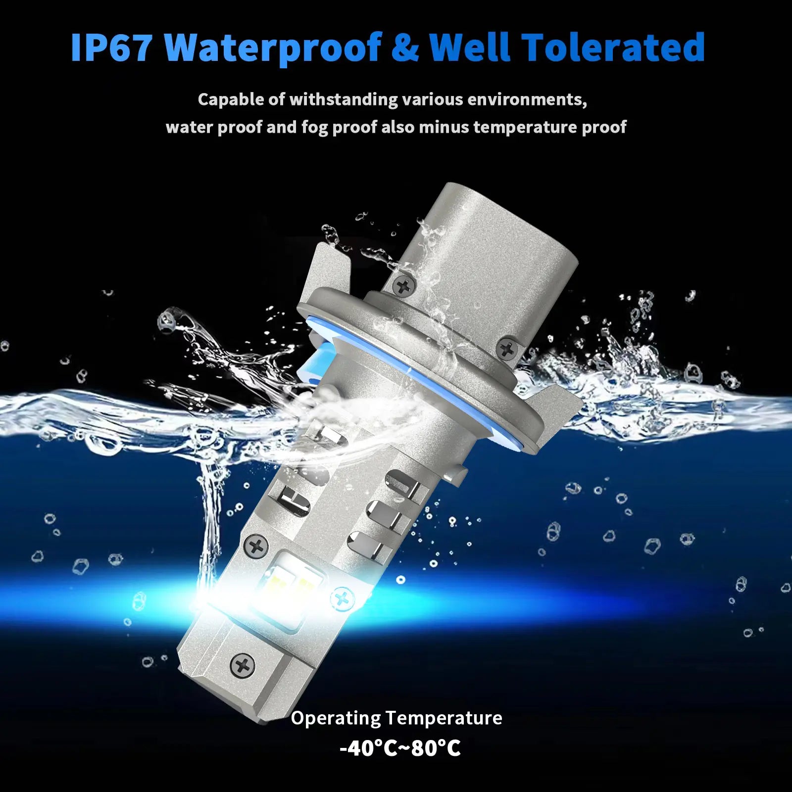 • The 30000LM strong light output provides 6000K cold white light visibility, wider angle and longer light distance to ensure your safe driving in dark and bad weather conditions.