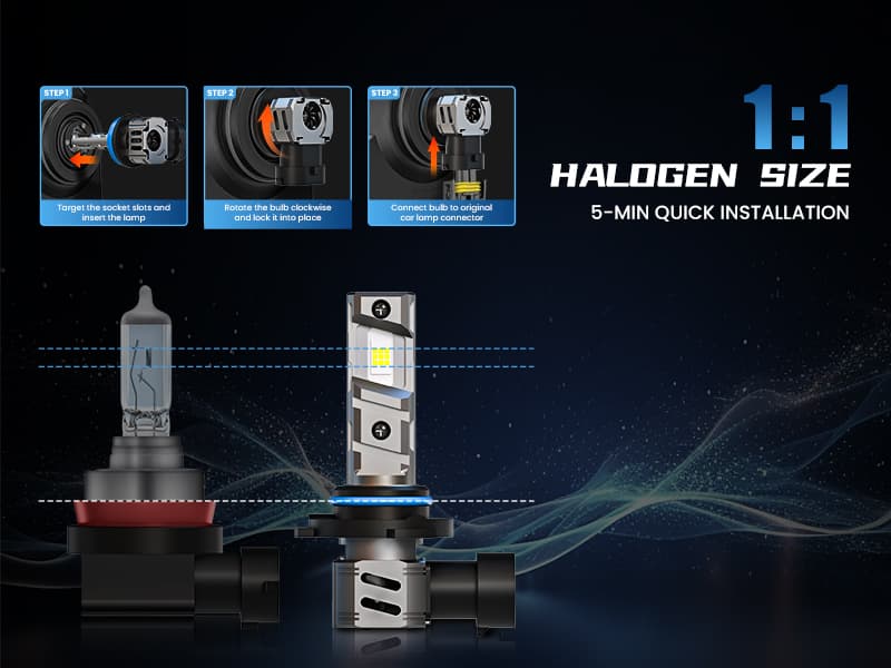 • The 1:1 mini size halogen bulb design, the bulb housing and the original plug are perfectly matched, there is almost no matching problem.