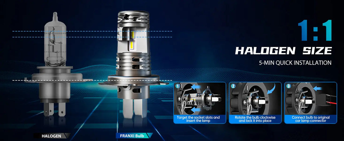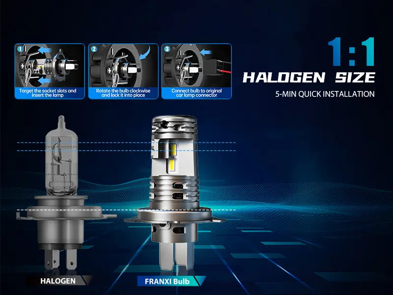 • ‎FRANXI H4 Headlight are designed with the same 1:1 mini design as the halogen lamps, bringing you a safer driving experience.